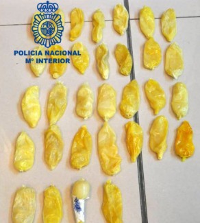 A part d’aquest modus operandi, durant la investigació es va interceptar un ciutadà que actuava com a mula. Es tracta de persones que transporten la droga dins del cos. L’home va ser aturat a l’aeroport del Prat. Havia sortit en un vol procedent de Santiago de Xile i, per arribar a Barcelona, havia fet parada a Salvador de Bahia i a Madrid-Barajas. Els investigadors van descobrir que, dins l’organisme, hi duia 32 preservatius que contenien cocaïna i que, en total, la droga feia un pes de 1.200 grams.