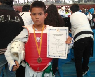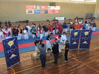 Aquest passat dissabte es va celebrar a Sant Celoni (Vallès Oriental) el Campionat de Catalunya de karate, en què hi va  participar l’escola de karate Dojo Sant Feliu amb dos alumnes:  en Than Son Oliver a la modalitat de kumite cadet (14- 15 anys) i en Victor Martínez a la modalitat de katas (demostració). Aquests dos amics fa temps que entrenen junts i s’ho van passar molt i molt i molt bé en el campionat, obtenint per part d’en Victor un molt ben merescut podi, quedant en tercer lloc. L’execució tècnica que va fer va ser molt i molt bona.. En Than Son era el primer cop que participava en aquest campionat en la modalitat de kumite (combat) i va realitzar un molt bon combat però el va empatar i es va quedar a les portes de pujar al podi.