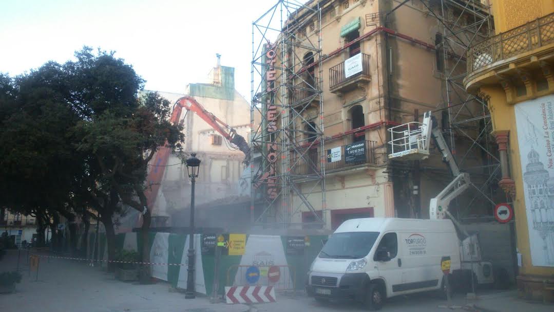 Aquest dimarts, les màquines han començat a enderrocar la façana dels antics hotels Rex i les Noies. La propietat és d’un inversor rus que tirarà avall els edificis i hi aixecarà un nou hotel de 4 estrelles i amb 65 habitacions.