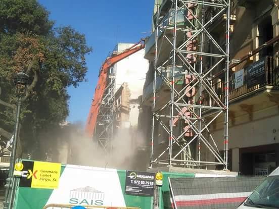 Durant tot el dia d’avui ha tingut lloc l’enderroc de l’antic hotel Les Noies a la Rambla del Portalet, on s’hi han congregat multitud de ciutadans i curiosos, alguns dels quals, càmera en mà, no han perdut l’ocasió d’immortalitzar el moment.