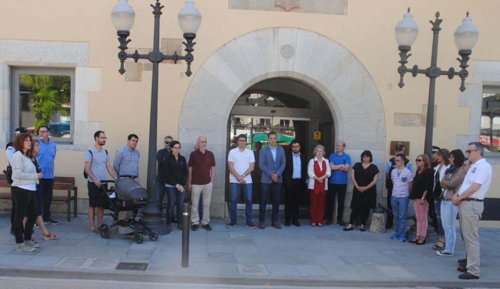 Alcalde, regidors i diversos treballadors, juntament amb diversos ganxons que s’hi han volgut adherir, s’han concentrat davant l’Ajuntament per mantenir el minut de silenci.