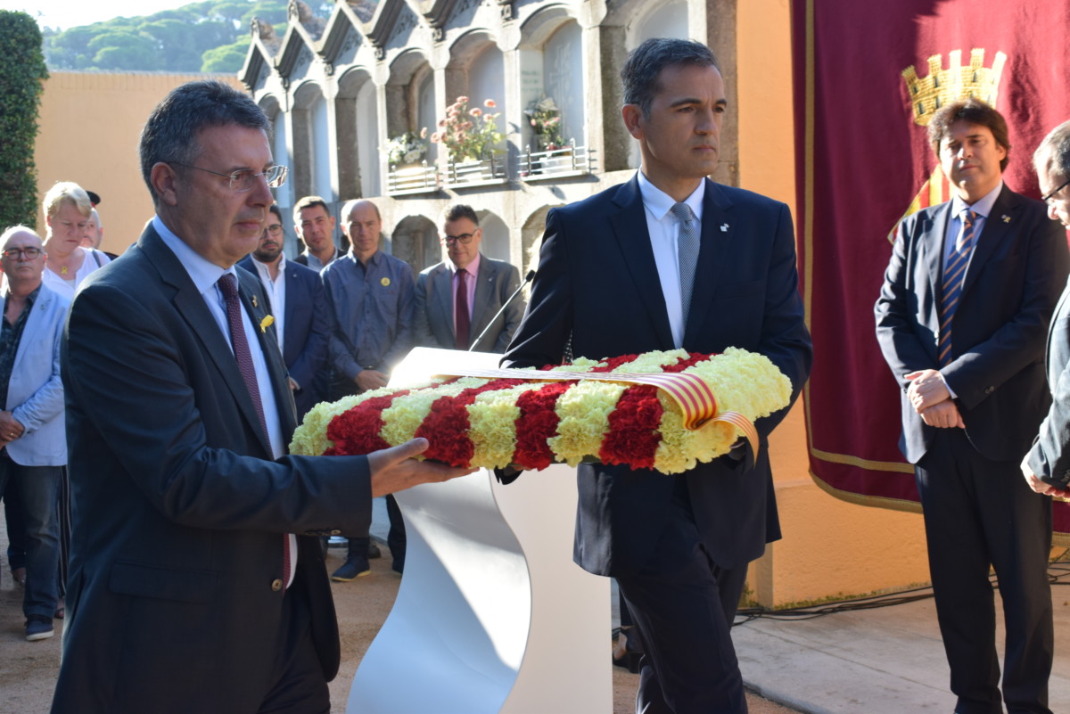 El tret de sortida de la Diada a les comarques gironines el dóna l’ofrena floral que cada any es fa al cementiri de la nostra ciutat, on descansen les despulles de l’expresident de la Generalitat a l’exili Josep Irla.