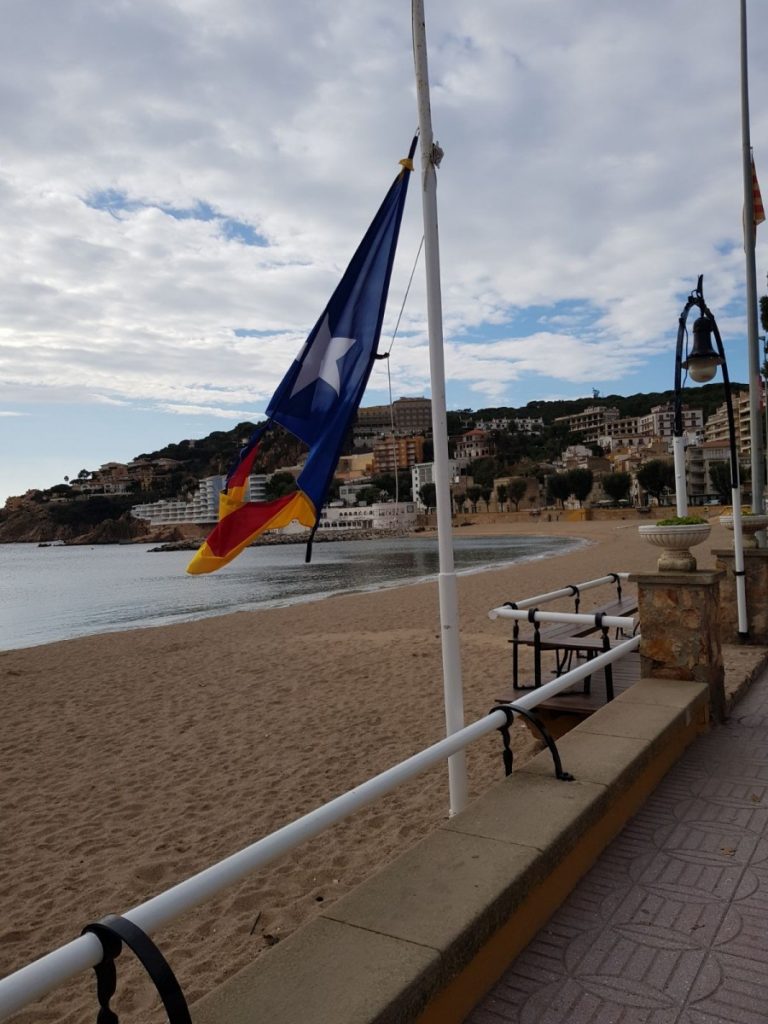 Aquesta estelada que veuen esparracada és la que està situada davant de la platja, al passeig de la nostra vila i simbolitza tots els anhels dels catalans per a ser més justos judicialment,