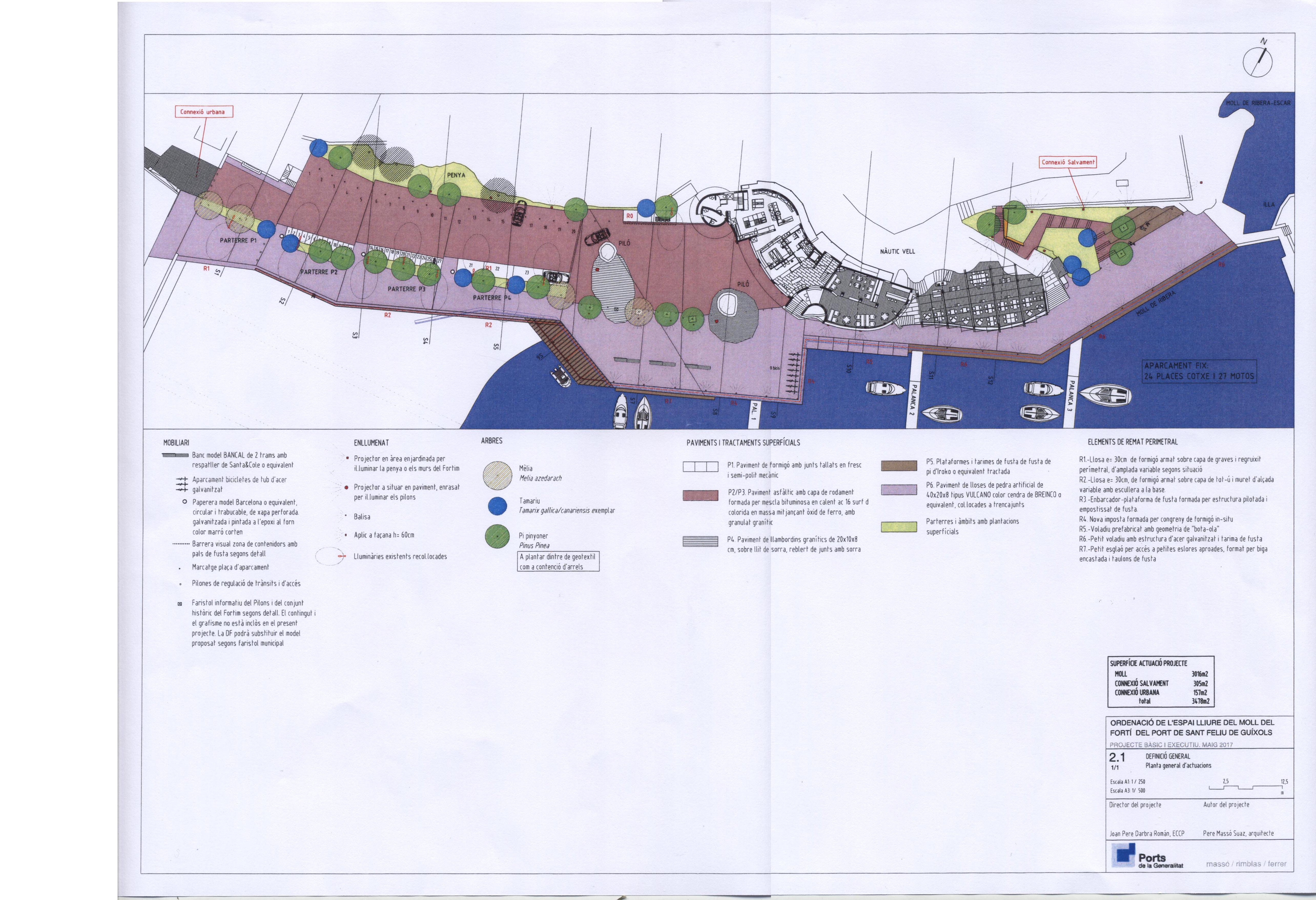 El projecte en execució dona compliment al que estableix el Pla especial vigent del port  de Sant Feliu de Guíxols, així com a la modificació puntual de la zona del moll del Fortí. L’actuació engloba en un projecte la urbanització de l’espai públic i la connexió de les plataformes existents a les zones alta i baixa del turó del Fortí mitjançant espais terrassats i escales.
