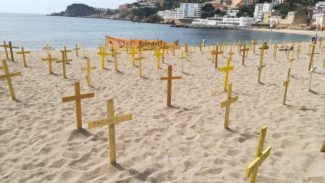 Els CDR van plantar diumenge desenes de creus a la platja de Sant Feliu per representar la “mort de les llibertats” i demanar l’alliberament dels presos polítics, una nova acció per denunciar l’empresonament i exili del govern destituït i també dels Jordis.