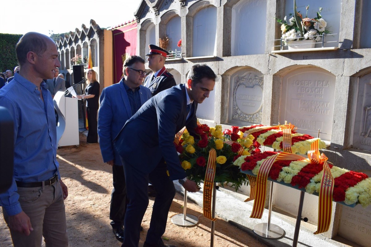 L’acte és un reconeixement a la figura de Josep Irla i Bosch, president de la Generalitat de Catalunya a l’exili i continuador de la institució durant la dictadura, que fill de Sant Feliu de Guíxols, també hi és enterrat, i per això cada Onze de Setembre es fa un acte institucional amb personalitats de les diferents administracions públiques.
