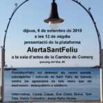 La presentació de la plataforma AlertaSantFeliu ha omplert la sala d'actes de la Cambra de Comerç fins al punt que moltes persones s'han hagut de situar als passadissos durant un acte adreçat en principi als mitjans de comunicació però obert a la ciutadania. L'acte ha anat a càrrec de la... Continua llegint [...]