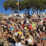 Els participants del primer bany de l'any a la platja de Sant Feliu van donar la benvinguda al 2018 amb aquest tradicional event social només apte per a valents que organitza el Club Aquàtic Xaloc conjuntament amb el Centre Excursionista Montclar i en què col·labora l'Ajuntament.
